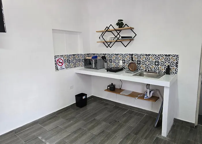 Тут есть и оснащённая всем необходимым кухня. Апартаменты оснащены мини-баром. Прямо возле этого места находится ближайшая автобусная остановка - Felipe Angeles.